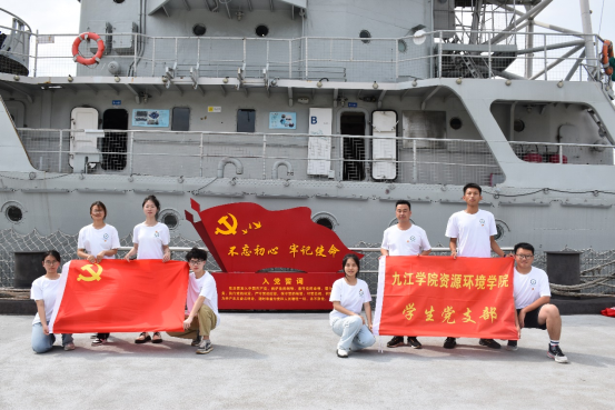 走进位于九江市湖口县的九江舰爱国主义教育基地,在老师的引导下,我们登上了威武的九江舰参观。在舰上全体党员和入党积极分子有序参观了前主炮监控室、驾驶舱、会议室、主机超控室等,近距离感受当年九江舰官兵战士执行任务的环境和人民海军的光荣历史,学习人民海军光荣传统和优良作风,以及维护国家海权的意志品质,感受我国海军的改革发展历程和实力的快速增强。