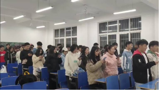 为响应学校党史学习教育中开展的“唱响红色经典 凝聚奋进力量”活动号召,推动红色基因厚植校园,唱响主旋律,弘扬正能量。2021年11月21日晚,资源环境学院组织各班级学生在香远楼固定教室,以“唱响红色经典 凝聚奋进力量”为主题,在班级例会开始唱响《没有共产党就没有新中国》《歌唱祖国》《社会主义好》《团结就是力量》等红色歌曲。资环学院全体师生都积极参与此次活动,使活动顺利有序进行。