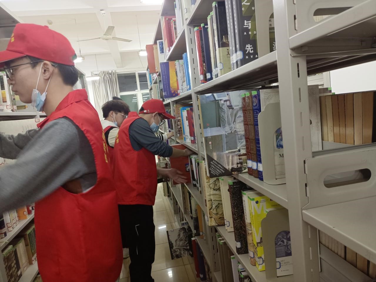 晚上八点,志愿者们在主图书馆门口集合完毕。在负责人安排好分组后,各自去自己负责的楼层迅速进入工作状态。本次活动的主要内容是清洁书架、整理书籍。活动中,大家互帮互助、默契合作,临近闭馆时间,志愿者有序地整理书籍、清理垃圾。在大家的共同努力下,书架地板干净整洁、图书排列整齐,志愿者们为在图书馆学习的同学们所做的一切,受到同学们的欢迎好评。大家互相帮助,积极配合,体现了青年志愿者团结合作,热心友善的品质。