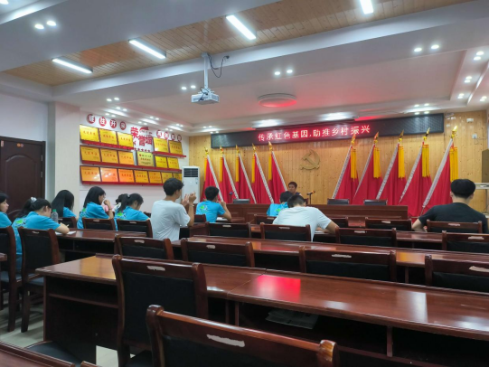 为了解当地村民对乡村振兴战略的意见和期望以及了解⼀些村民其他的问题,队长组织了⼀次问卷调查活动以及实地考察。在问卷调查过程中,队员们感受到了村民的淳朴热情,在与他们的聊天当中也感受到了他们对乡村振兴战略的肯定和感谢。在随后的实地调查中队员们发现当地自然生态环境优美,红色文化丰富,到处可见有关乡村振兴的宣传板报。