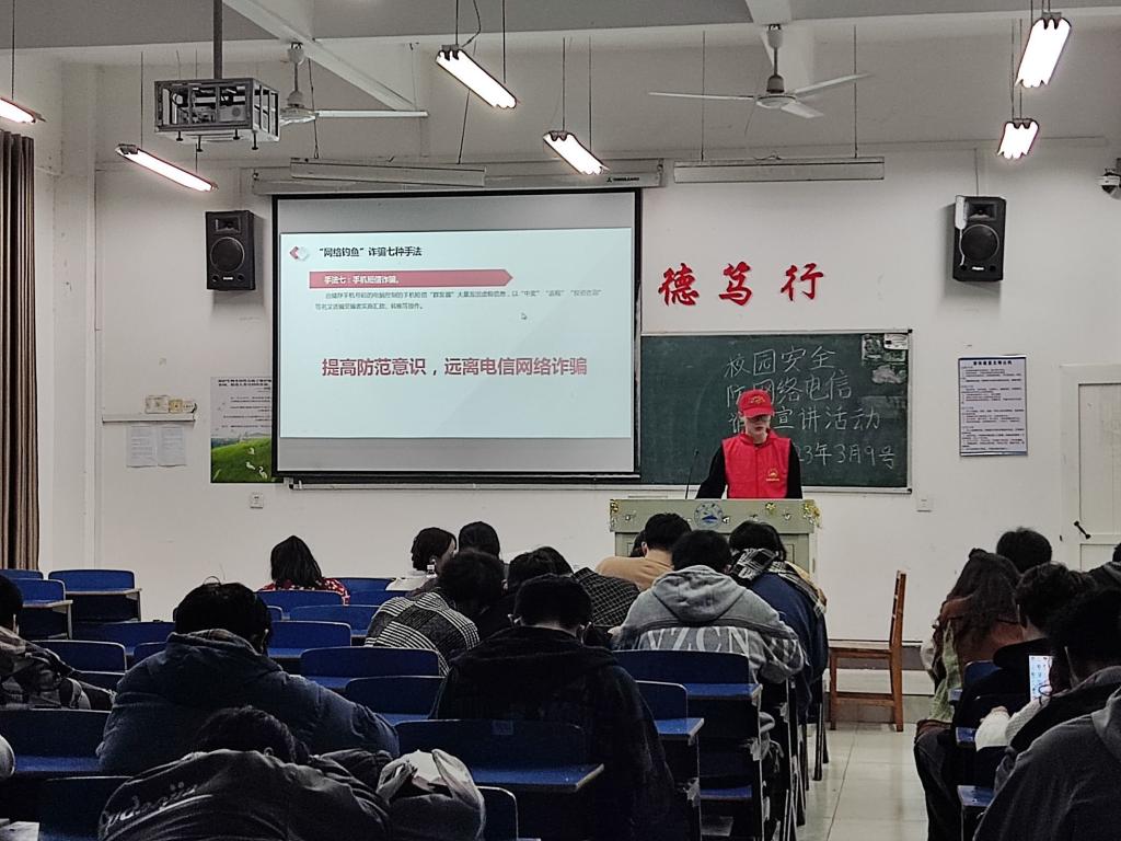 为进一步做好校园网络电信诈骗防范工作,构建和谐平安校园,切实做好电信网络诈骗的防范教育工作,3月9日晚,KY开元集团官网入口在厚德楼各班固定教室开展“你我同心,反诈同行”防电信网络诈骗志愿宣讲活动。