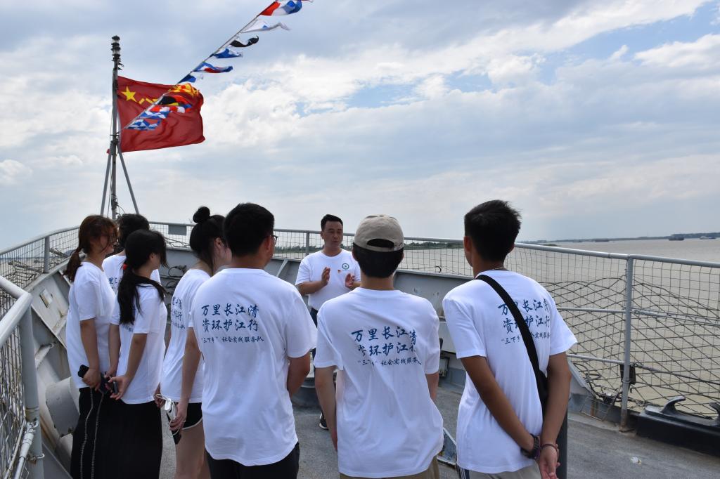 为进一步弘扬爱国主义精神,增强国防观念,“红色走读”实践团队走进位于九江市湖口县的九江舰爱国主义教育基地,近距离学习九江舰的辉煌历史和战斗精神,感受我国海军的发展历程以及海军实力的日益强大,激发青年学子们强烈的爱国情怀。同学们参观学习了“九江舰”的服役历史、火力配备及战略地位等内容,对“九江舰”多次在全军、海军、舰队组织的重大演习及海上巡逻、护渔护航等急难险重战备任务中屡建功勋,倍感光荣与自豪。在看到会议室墙壁上贴满了奖状和悬挂着伟人的题词,激励战士们勇往直前,也激发了同学们的爱国报国军人梦。