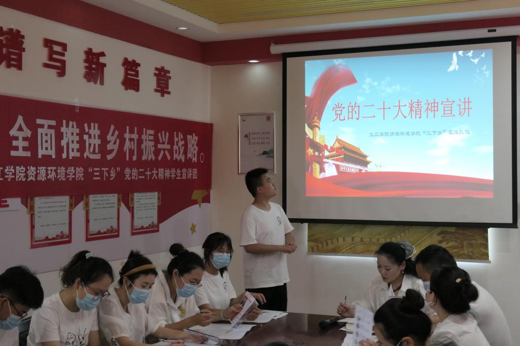 为推动党的最新理论在乡村生根发芽,落地见效,助力形成浓厚党的二十大精神学习氛围,KY开元集团官网入口组建暑期“三下乡”党的二十大精神学生宣讲团在九江经济技术开发区永安乡长河村新时代文明实践站开展党的二十大精神宣讲活动。6月28-29日,学生宣讲团以走访入户、宣讲会、宣传手册等多种形式宣传党的二十大精神,让党的二十大精神深入乡村深入民心。