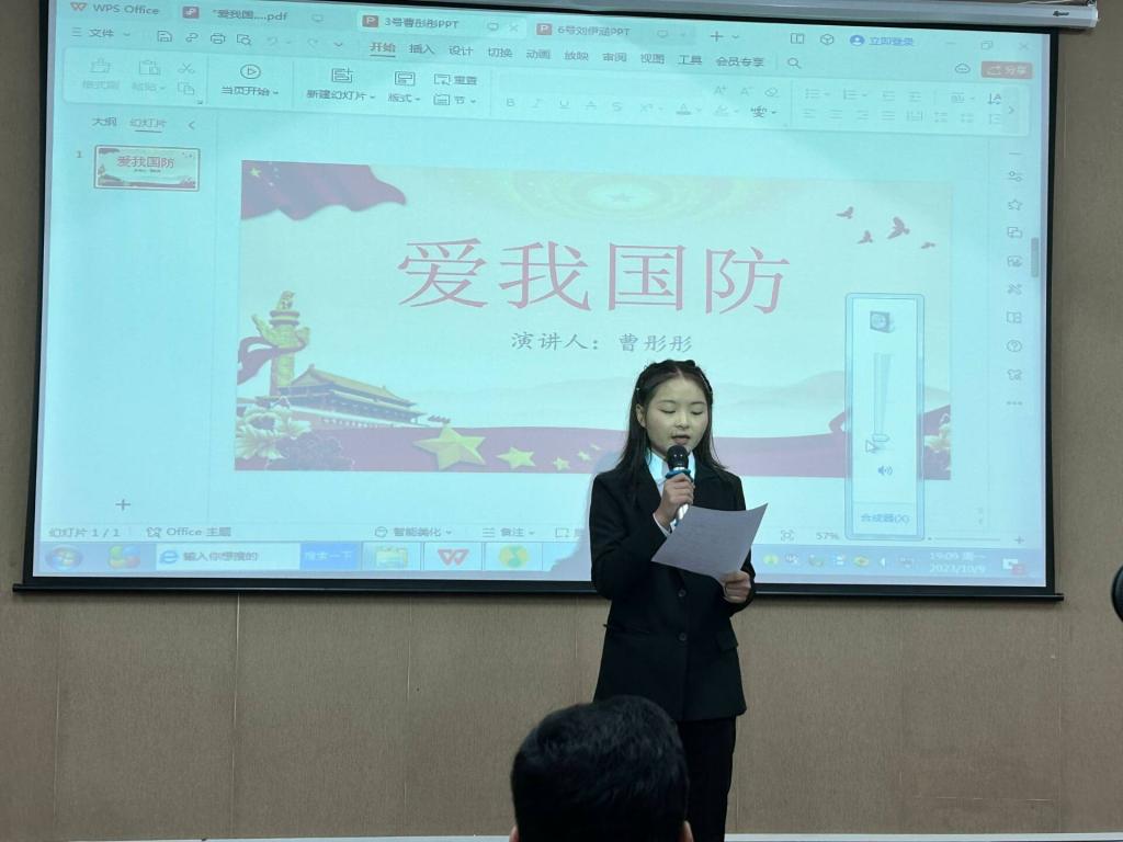 为贯彻落实党的二十大精神,深入学习贯彻习近平强军思想,推动新时代全民国防教育工作深入普及,提高KY官网学生素质能力,促进学生个性化发展,培养学生演讲能力,2023年10月9日晚上七点,KY开元集团官网入口于向学楼201开展以“爱我国防”为主题的演讲比赛。