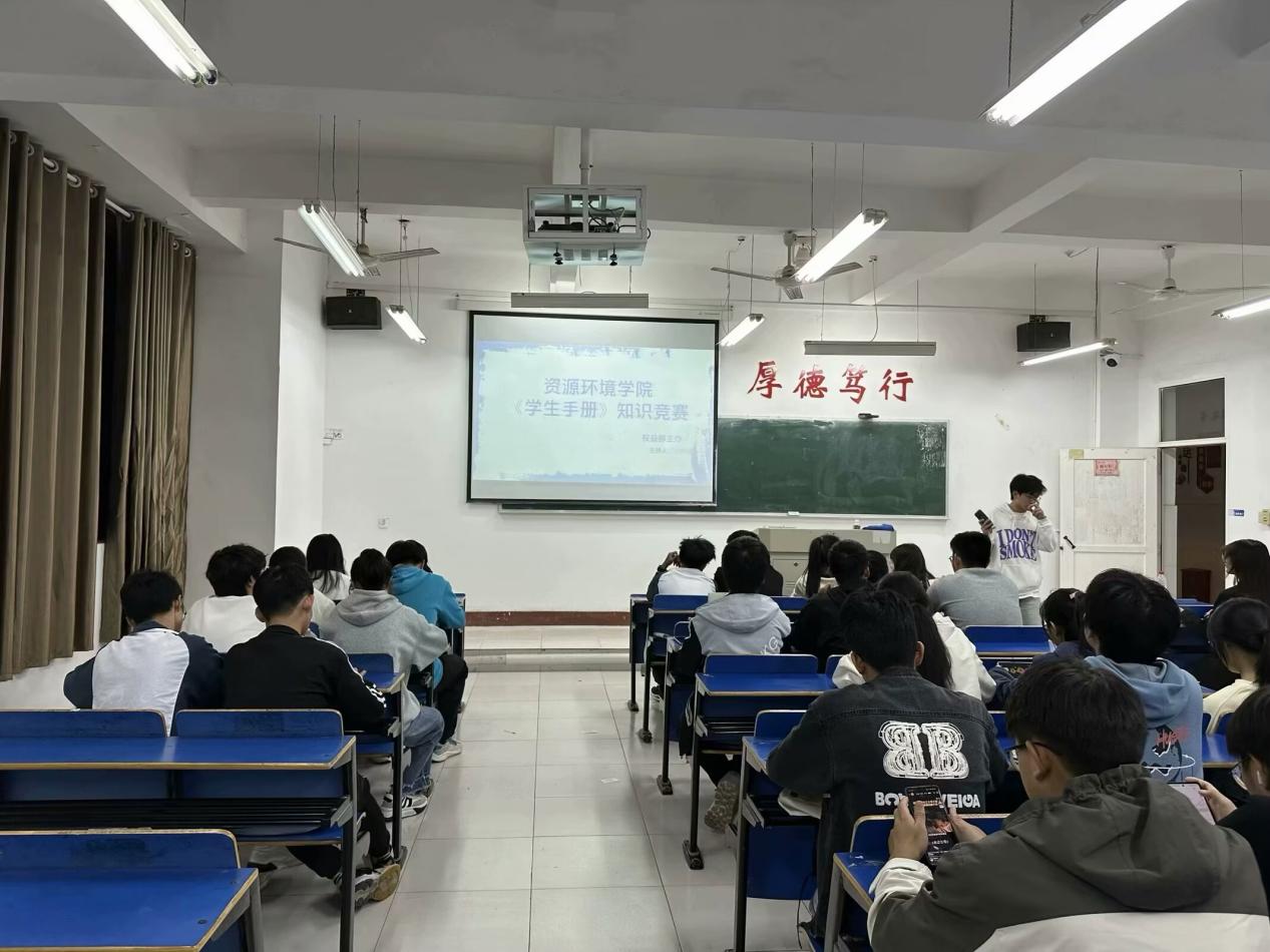 KY官网于2023年10月26日晚组织各班开展了学习《学生手册》主题班会,通过各班班长讲解学生手册让同学们更加清楚的了解关于学校的的规章制度以及对大学的学业要求。同时,资环学院于11月6日组织开展了学生手册答题知识竞赛,通过作答和抢答的方式加深学生对学生手册的了解。这次知识竞赛提高了同学们的应变能力,促进学生更加深入研读学生手册内容,培养了学生综合素养,为将来的大学学习生活打下坚实基础。