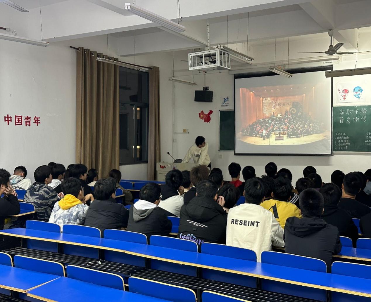 此次活动中,各团支部组织本支部团员与青年对我校校歌的由来和内容进行资料搜集整理,重点学习讨论校歌所传递的精神力量,并在团日活动中进行分析讨论与交流心得。同时通过PPT讲解的方式让同学们进一步了解非遗文化。