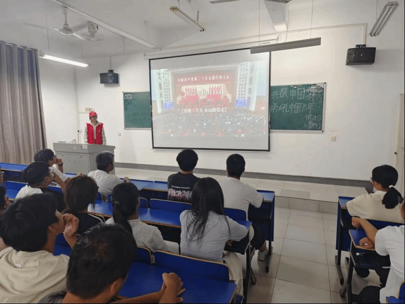 正值国庆来临,同学们怀着激动的心情迎接着新中国成立75周年的到来。此次宣讲活动志愿者们带领着同学们回顾了中华民族的历史长河,向同学们展示了祖国从弱到强,从贫穷到富饶的对比图,以及在各方面取得的巨大成就,让同学们全方位深入体会祖国的飞速发展与繁荣昌盛。