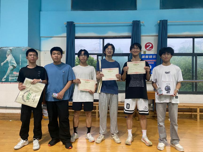 比赛设立男单、女单两个项目,采用紧张刺激的淘汰赛制。赛场上,选手们目光如炬,每一个动作都凝聚着必胜的信念。只见高远球划破长空,势大力沉的扣杀如雷霆万钧,轻盈的劈吊似蜻蜓点水,细腻的网前小球更显功力深厚。洁白的羽毛球在空中划出一道道银色的轨迹,宛如流星赶月。男单赛场上,健儿们以矫健的身姿演绎着力量与速度的完美结合。他们时而如猛虎下山般强势进攻,时而似游龙戏水般巧妙防守,每一次挥拍都迸发着青春的活力。经过多轮紧张角逐,男子单打前三名最终诞生,A2221叶维祎班叶凭借出色发挥斩获冠军,A2312班廖星水、A2413班周辉分别荣获亚军与季军。女单对决中,巾帼英雄们以灵动的步伐掌控全场,她们精准的落点控制与多变的战术组合相得益彰,飒爽英姿丝毫不让须眉。赛场边,观众们屏息凝神,随着每一个精彩回合爆发出雷鸣般的掌声与喝彩,将比赛气氛推向一个又一个高潮。比赛结束后也进行了颁奖环节,体育部为获胜的选手准备了奖状及实用奖品,如特色盆栽,风扇,球包。