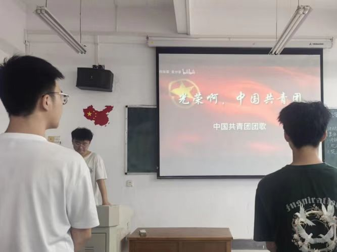 开展团日活动之前,同学们集体起立,齐声唱响了中国共青团团歌——《光荣啊!中国共青团》,歌声如潮,团员青年们用他们的歌声打动着每一个人的心。