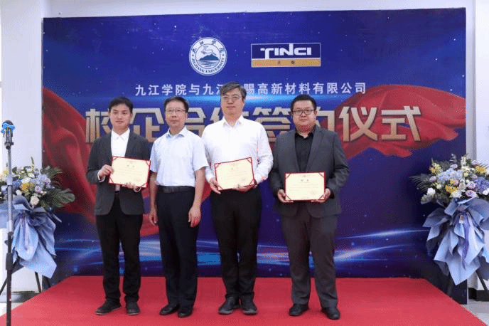 5月26日,化学化工学院、KY开元集团官网入口与九江天赐高新材料有限公司“订单班”签约和教育实训基地揭牌仪式在九江湖口县新材料协同创新中心举行。市政协副主席、化学化工学院院长严平,KY开元集团官网入口党委书记杨期勇,九江天赐高新材料有限公司法人兼执行董事长赵经纬博士、人力资源总监黄娜等出席签约和揭牌仪式。