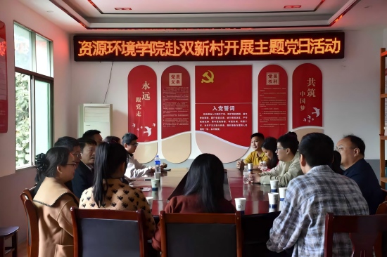 在双新村委会议室,学院党委书记徐常龙上了一堂微党课,从党的二十届四中全会的重大意义,“十四五”时期我国发展取得的重大成就,“十五五”时期在基本实现社会主义现代化进程中的重要地位,“十五五”时期经济社会发展的指导方针、主要目标、战略任务和重大举措等方面,对党的二十届四中全会精神作了全面宣讲。他强调,学院全体师生要深刻领悟“两个确立”的决定性意义,增强“四个意识”、坚定“四个自信”、做到“两个维护”,把思想统一到全会精神上来,深刻领会好把握好贯彻好全会精神,深化理论联系实际,促进党建与业务深度融合,以绿色发展引领乡村振兴,践行服务群众的初心使命,不断开创学院高质量发展新局面。