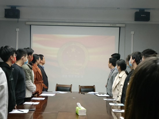 会议在庄严的国歌声中拉开了帷幕,全体参会人员起立,高唱国歌。