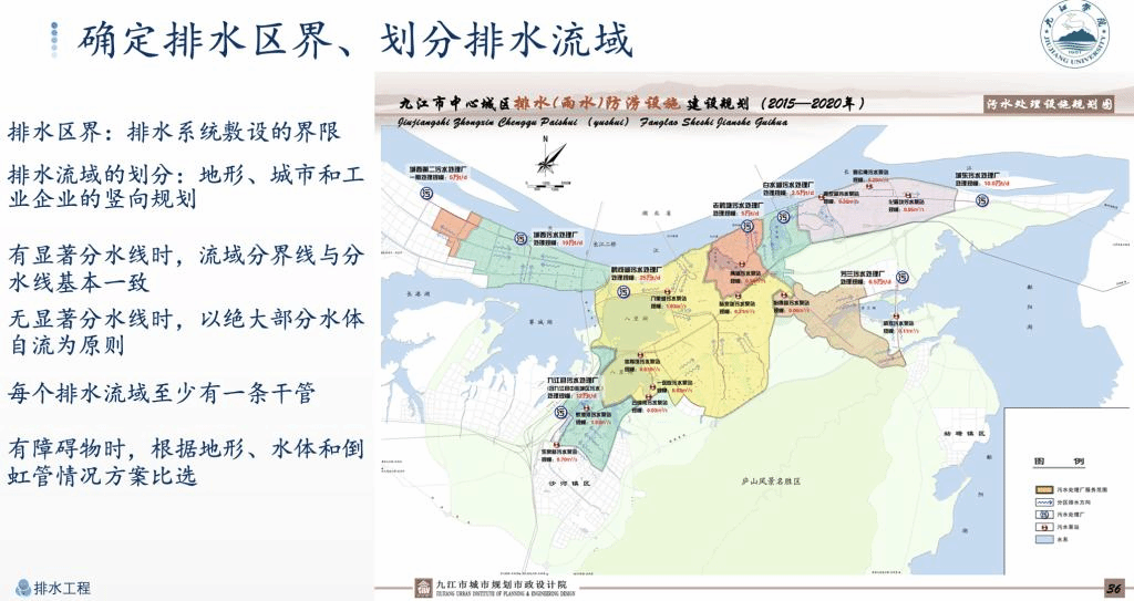 教师:以九江市排水规划为例,介绍本地污水管网、雨水管网、易涝点治理的布置和规划工作。